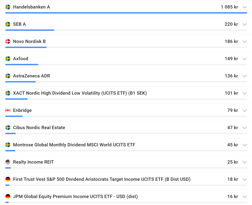 A good dividend month 2110kr.